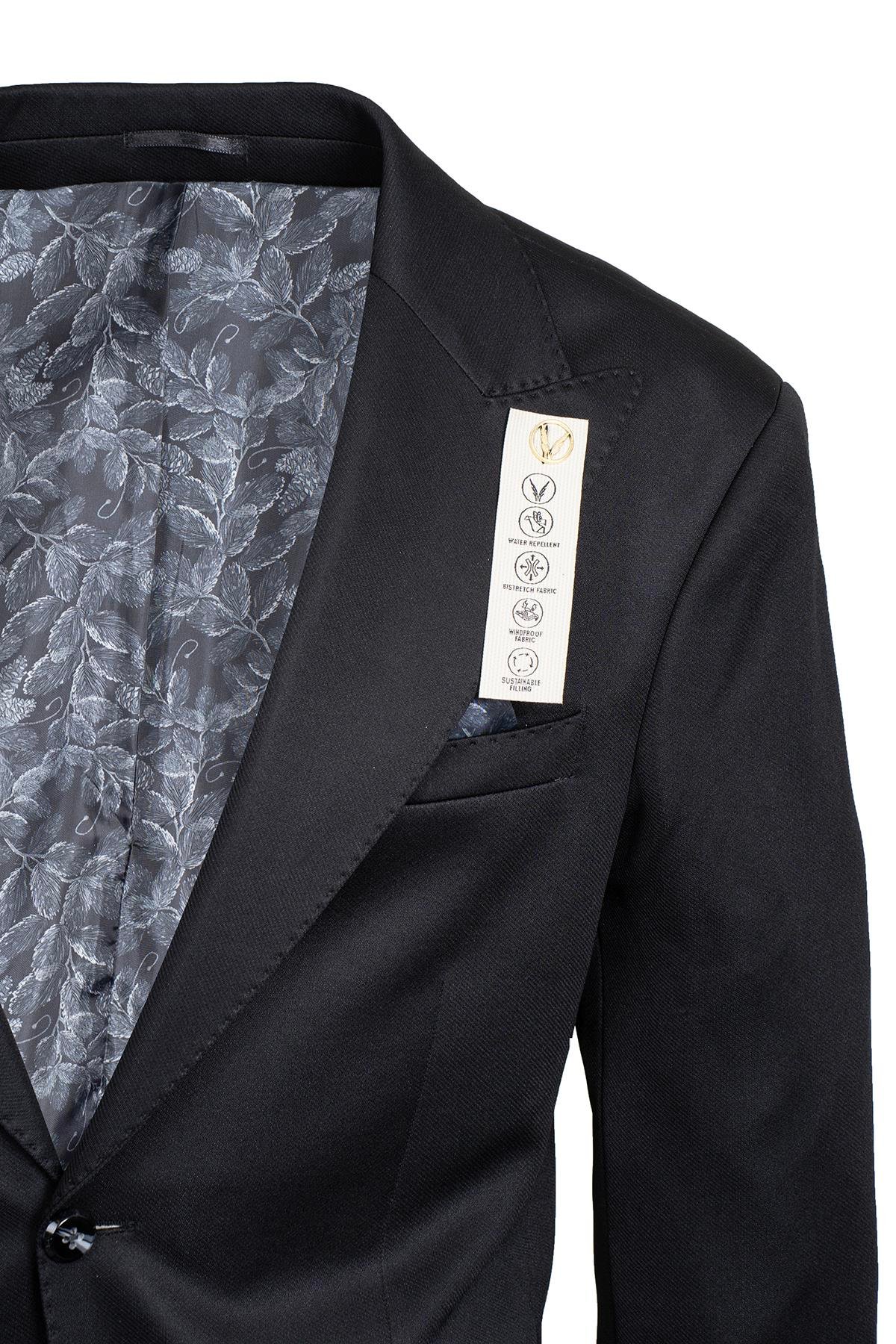 Siyah Erkek Slim Fit Poliviskon Full Likra Tek Düğme Ceket